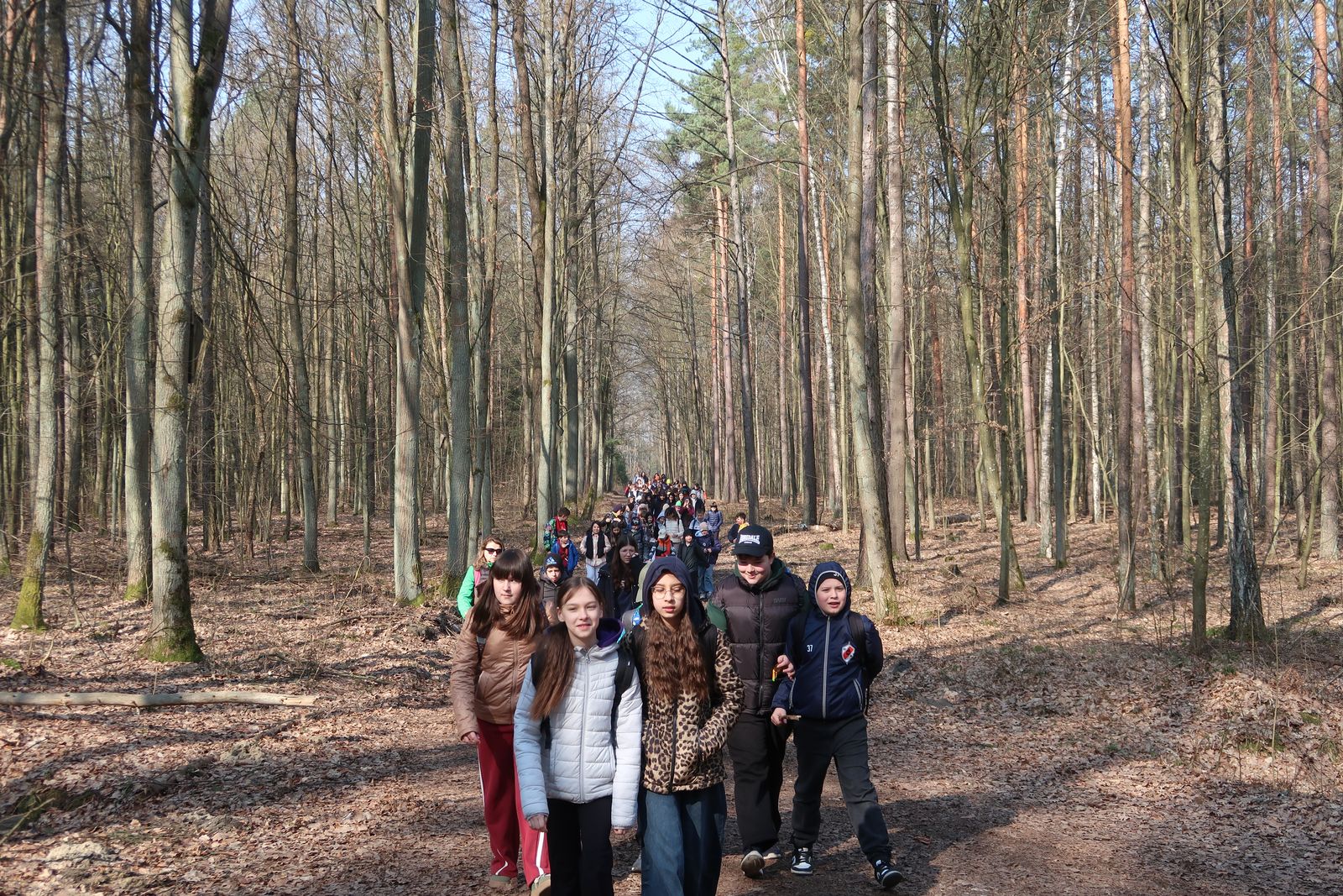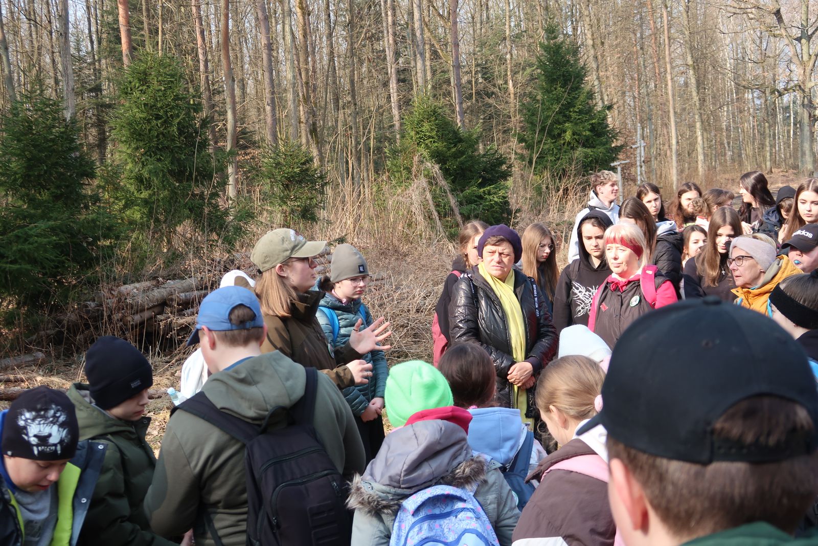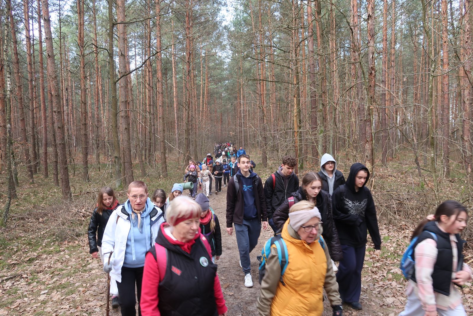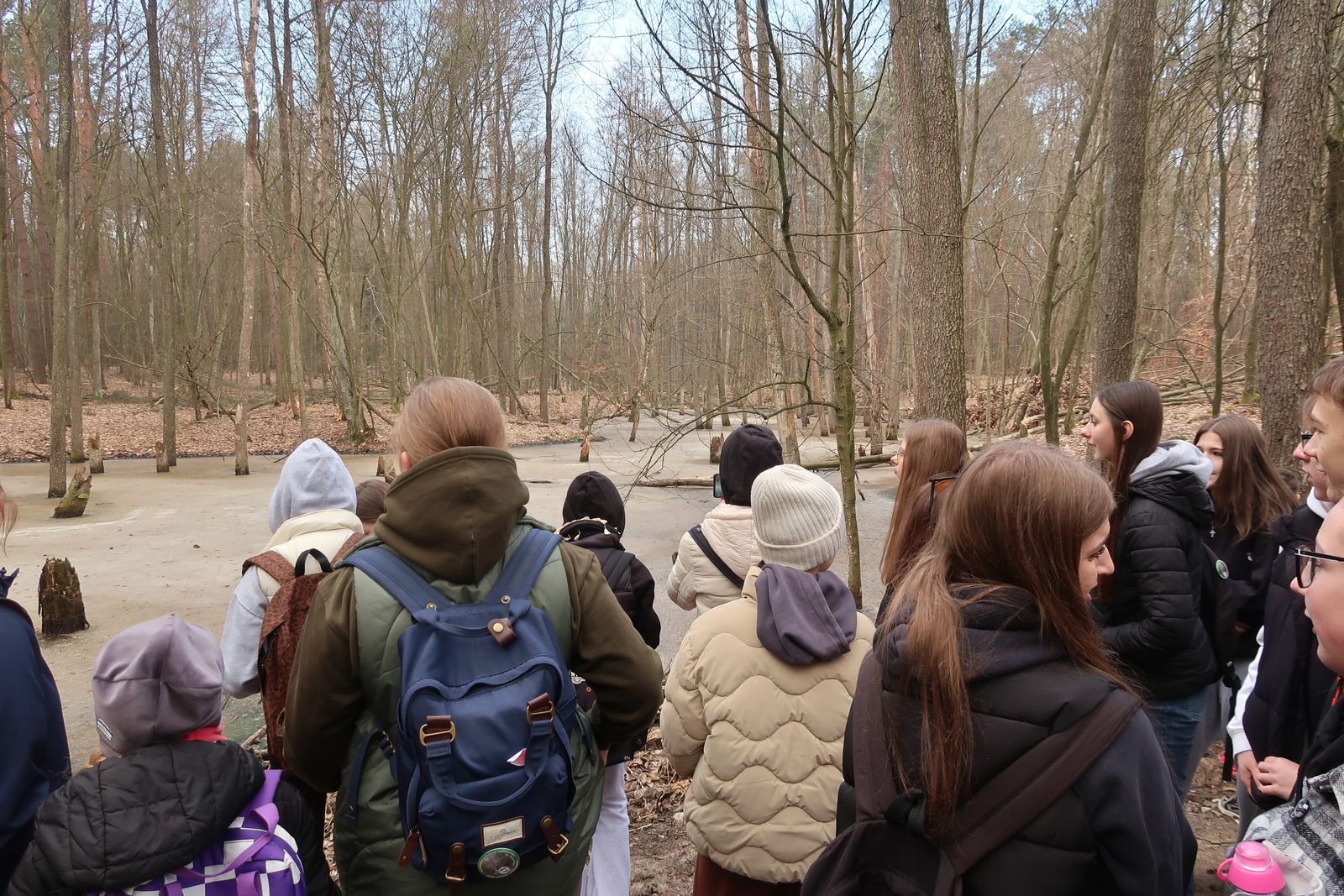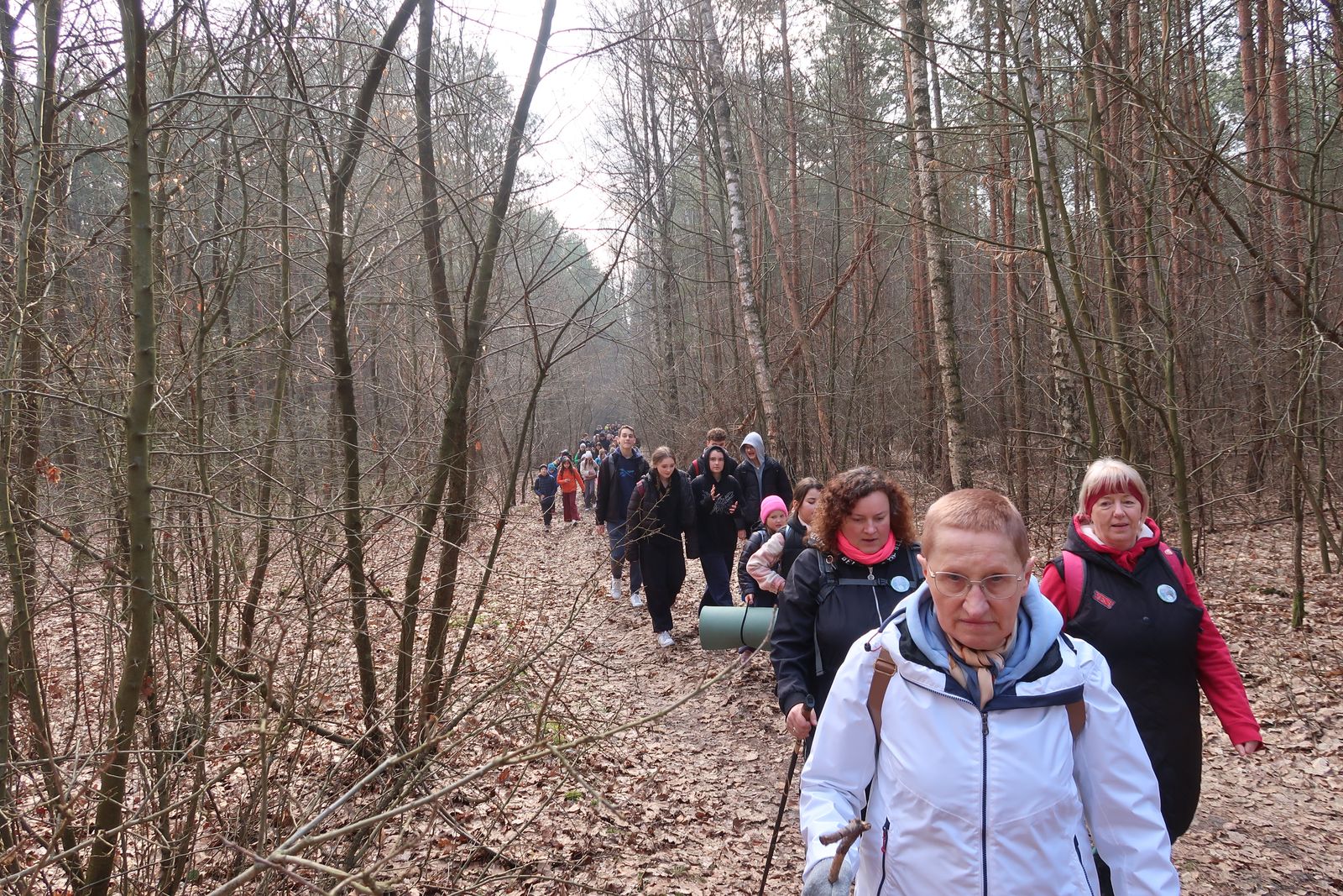 Wyruszyliśmy na trasę z Augustowa. Po przejściu kilkuset metrów dotarliśmy do urokliwej doliny Brzeźniczki. Woda na zbiorniku jeszcze nie rozmarzła - czeka na wiosnę:). Następnie, trochę na przełaj, przeszliśmy do leśnej mogiły z czasów I wojny światowej. Dalej, klucząc leśnymi duktami, dotarliśmy do rezerwatu Brzeźniczka. Tu o jego walorach opowiedział pani Karolina Bukowska z Nadleśnictwa Kozienice. Później, idąc tzw. Czarną Drogą, doszliśmy do Pionek i siedziby Nadleśnictwa Kozienice. Tam czekał na wszystkich gorący posiłek i oczywiście test krajoznawczy z nagrodami.