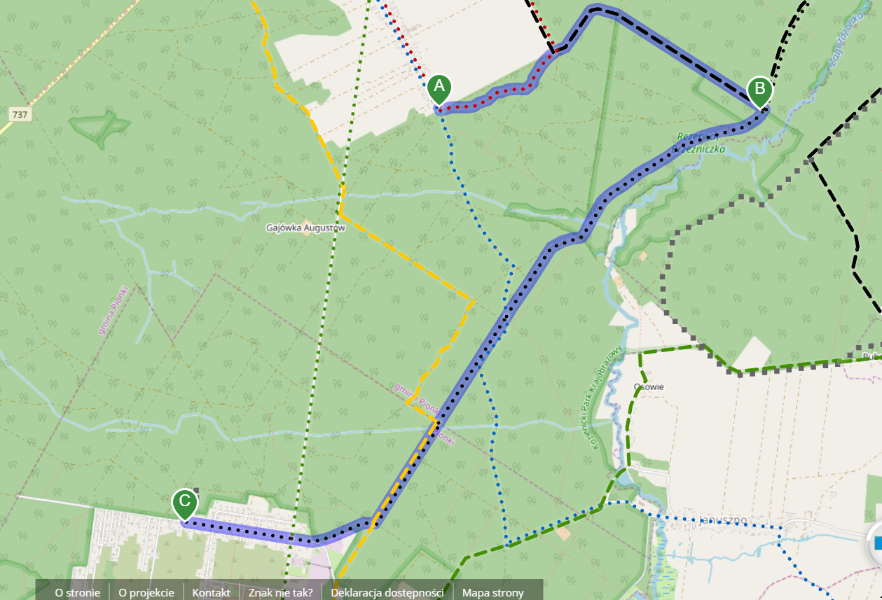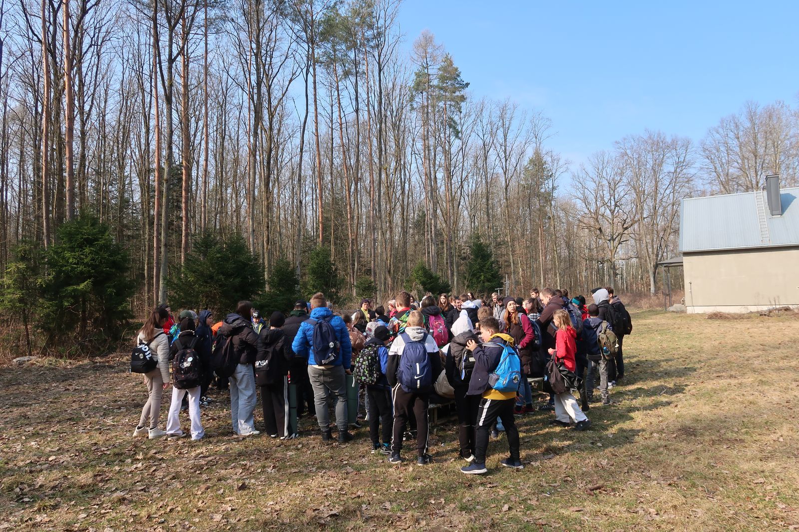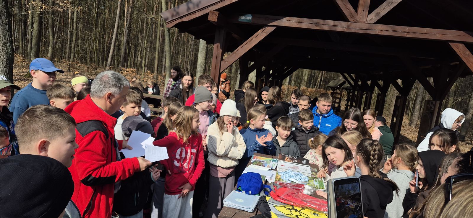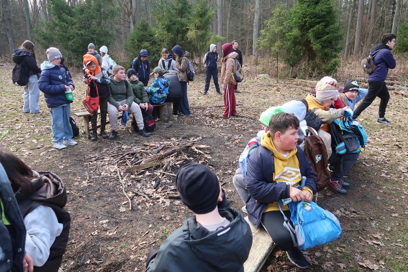 Wyruszyliśmy na trasę z Augustowa. Po przejściu kilkuset metrów dotarliśmy do urokliwej doliny Brzeźniczki. Woda na zbiorniku jeszcze nie rozmarzła - czeka na wiosnę:). Następnie, trochę na przełaj, przeszliśmy do leśnej mogiły z czasów I wojny światowej. Dalej, klucząc leśnymi duktami, dotarliśmy do rezerwatu Brzeźniczka. Tu o jego walorach opowiedział pani Karolina Bukowska z Nadleśnictwa Kozienice. Później, idąc tzw. Czarną Drogą, doszliśmy do Pionek i siedziby Nadleśnictwa Kozienice. Tam czekał na wszystkich gorący posiłek i oczywiście test krajoznawczy z nagrodami.